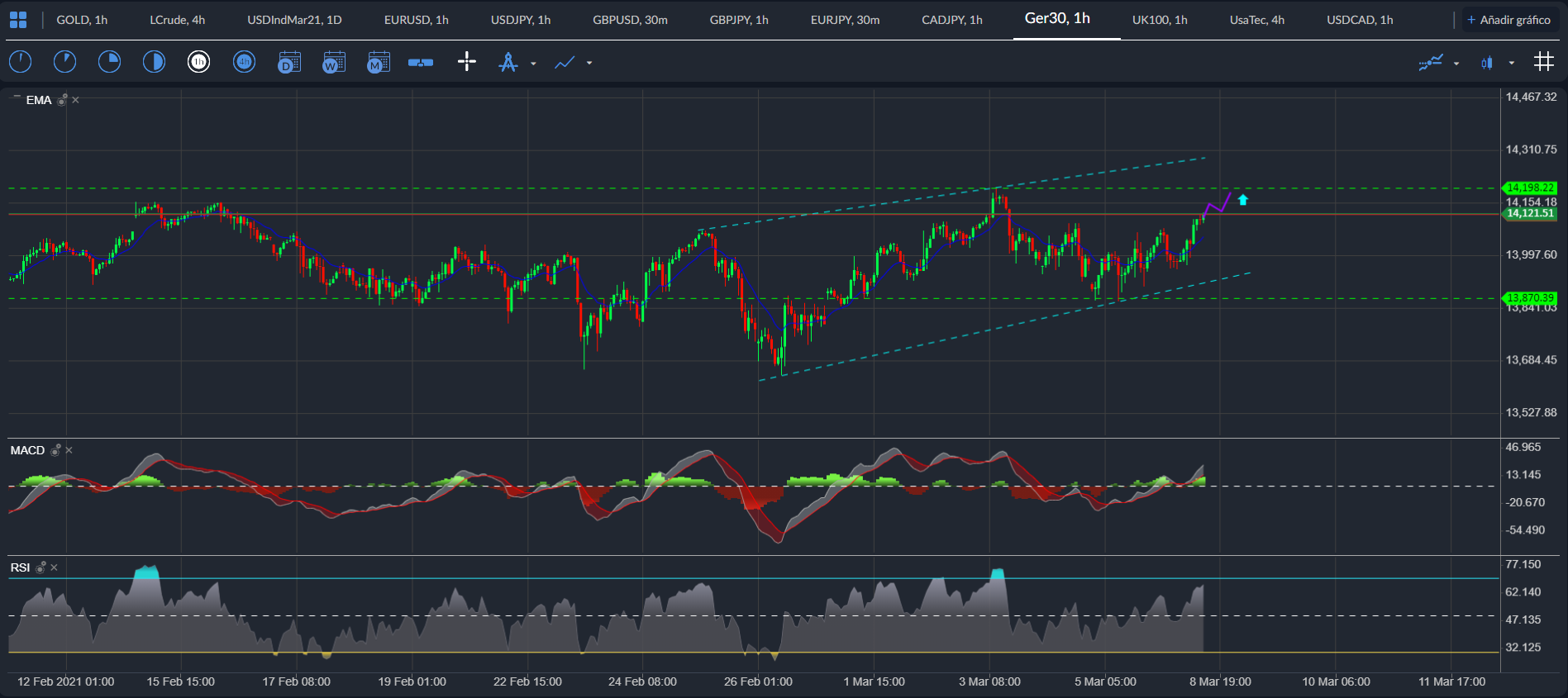 • MACD: con cruce alcista