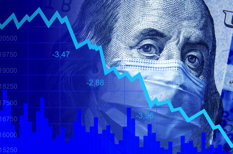 COVID-19 impacts to business, dollar money and graph of stock market crash during coronavirus pandemic. World economy hits by novel corona virus.