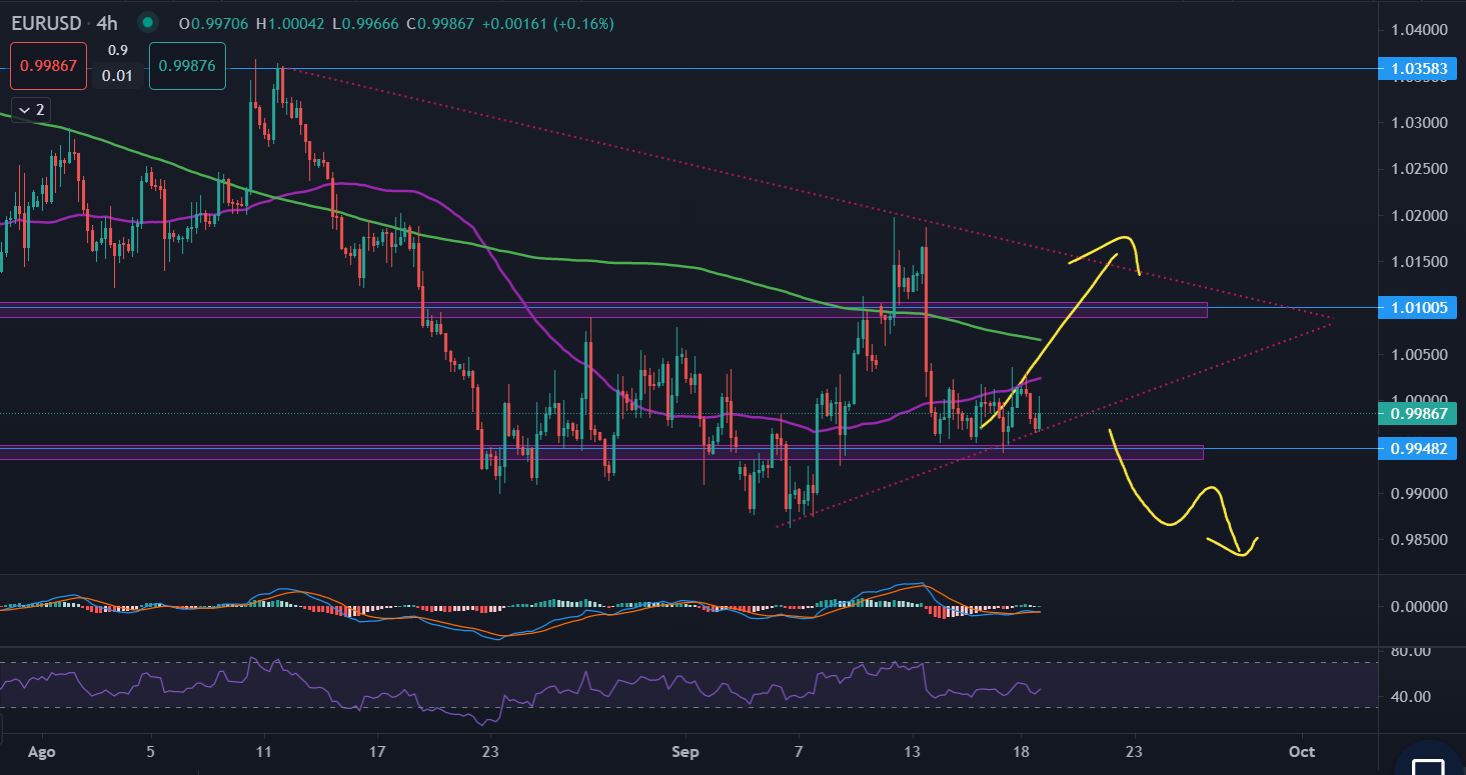 ⌚Temporalidad: 4H.✔️EMA con pendiente lateral. ?Nivel de resistencia: 0.9693.