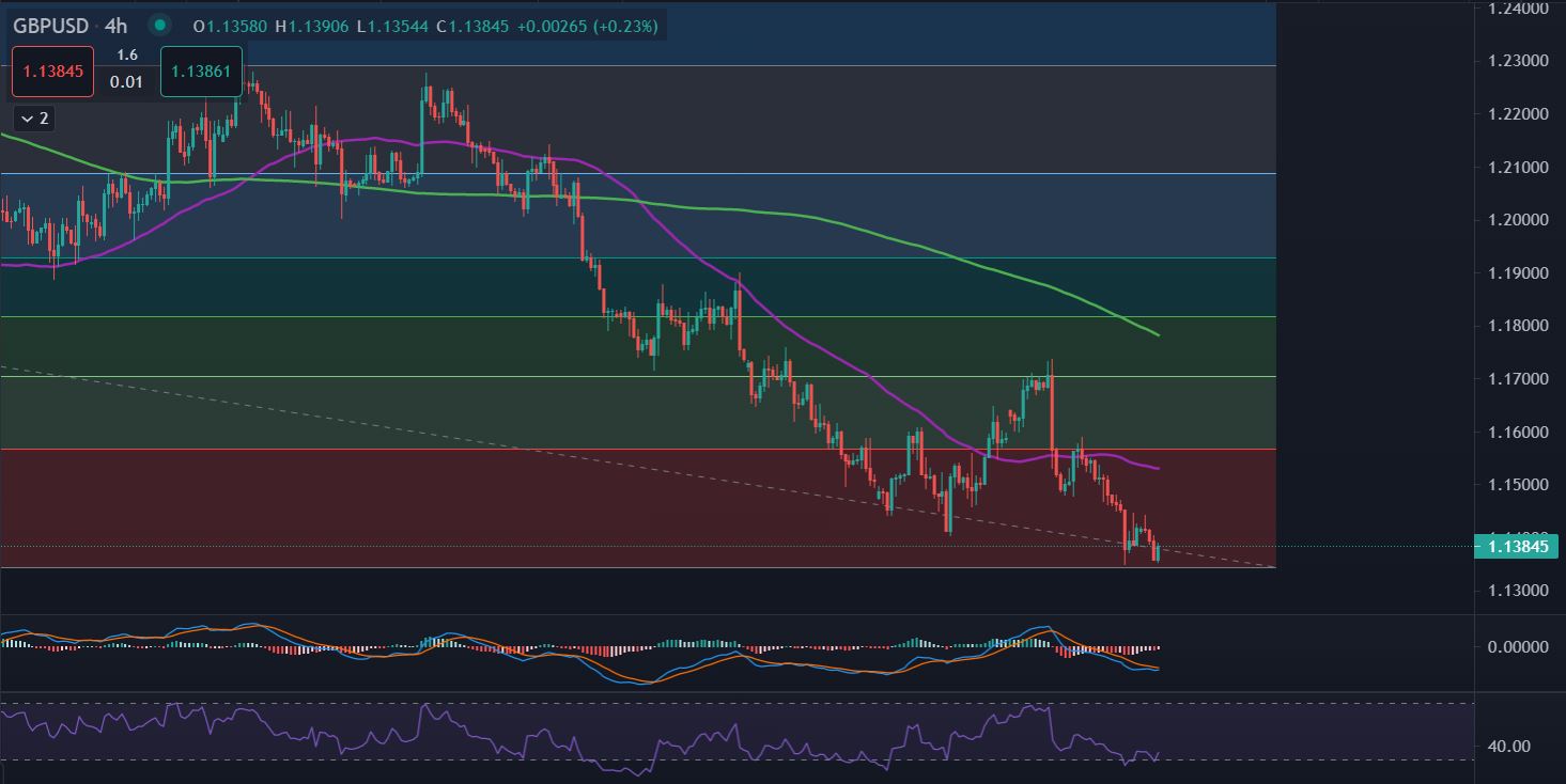 La paridad GBPUSD cotiza a la baja muy cerca de mínimos y en niveles de sobreventa lo que podría atraer algunos compradores en búsqueda de un movimiento correctivo que pueda impulsar el precio hacia el 23 por ciento de Fibonacci que se ubica sobre 1.1566.