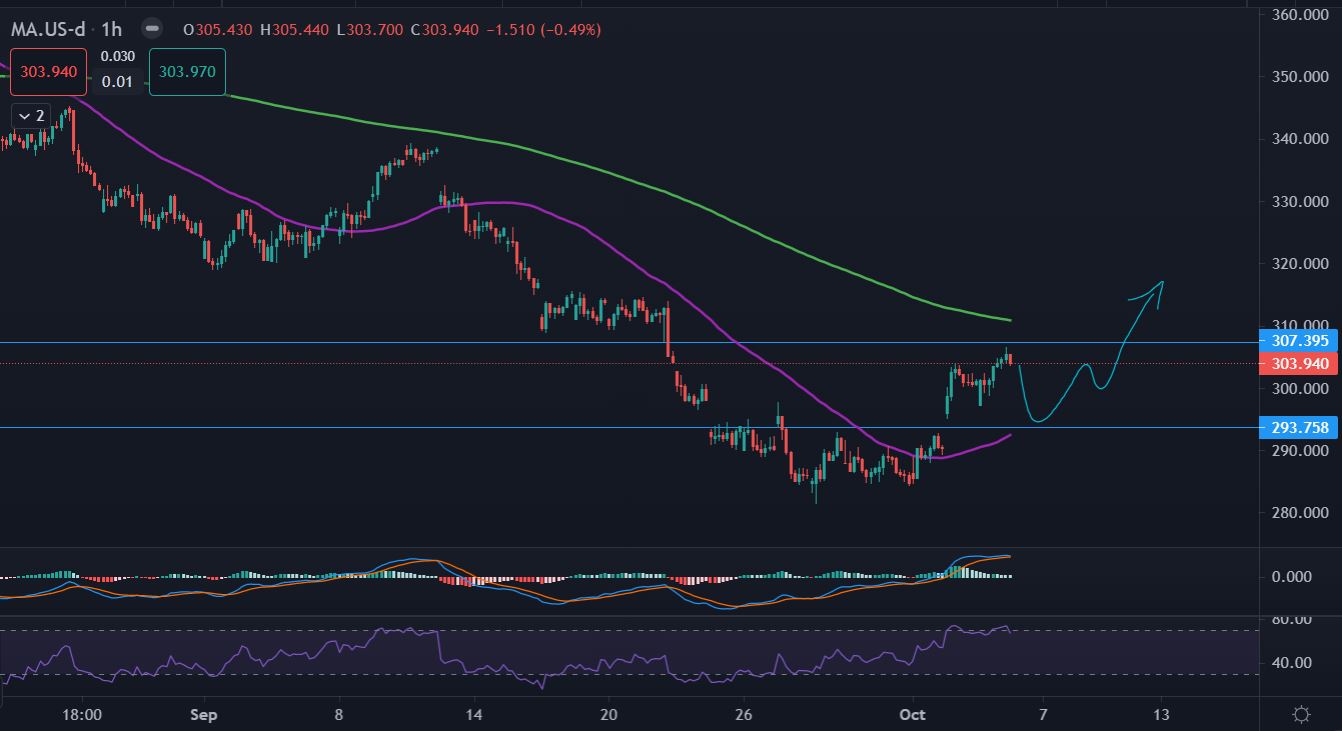 Las últimas jornadas de negociación han sido positivas para la acción MA acercándose a la resistencia de 310.00, zona clave a vencer en favor de los toros. Su ruptura podría estimar objetivos a corto plazo sobre 317.84.
