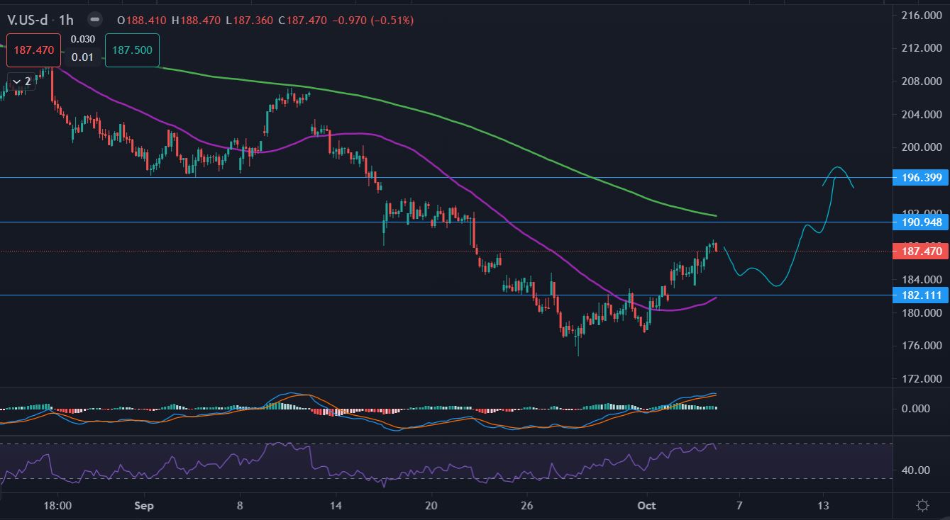 En las últimas jornadas la acción de Visa se ha recuperado desde sus mínimos anuales que alcanzaron la zona de 174.94 a finales de septiembre.