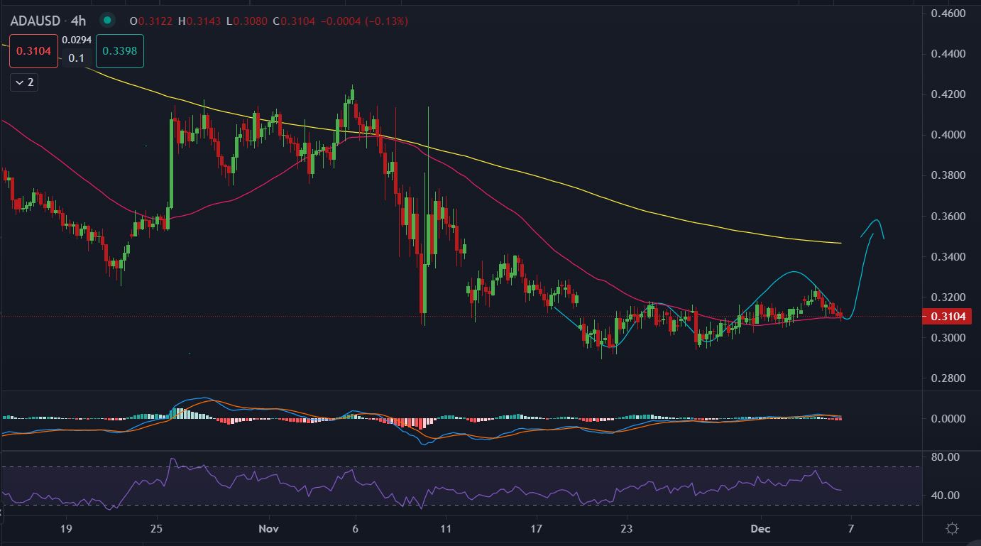 ADA ha caído casi un 89% desde sus máximos históricos y podría prepararse para una nueva recuperación ya que sobre gráficos de 4H empieza a mostrar una formación de cambio de tendencia como lo es el doble suelo.