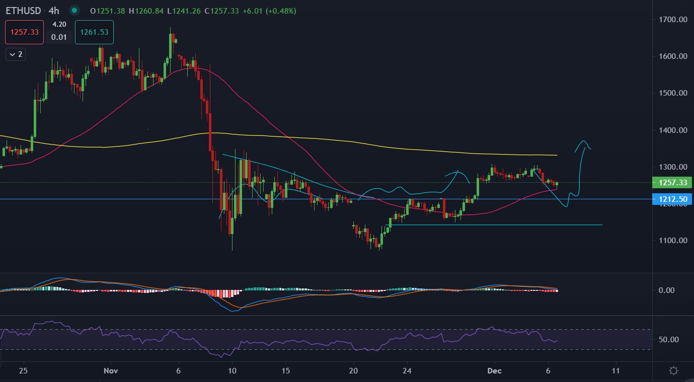 El precio de ETH se ha estabilizado por encima de la zona de 1,250, sin embargo, la presión bajista por la que atraviesan las criptomonedas podría darle a ETH un nuevo impulso bajista antes de encontrar demanda.