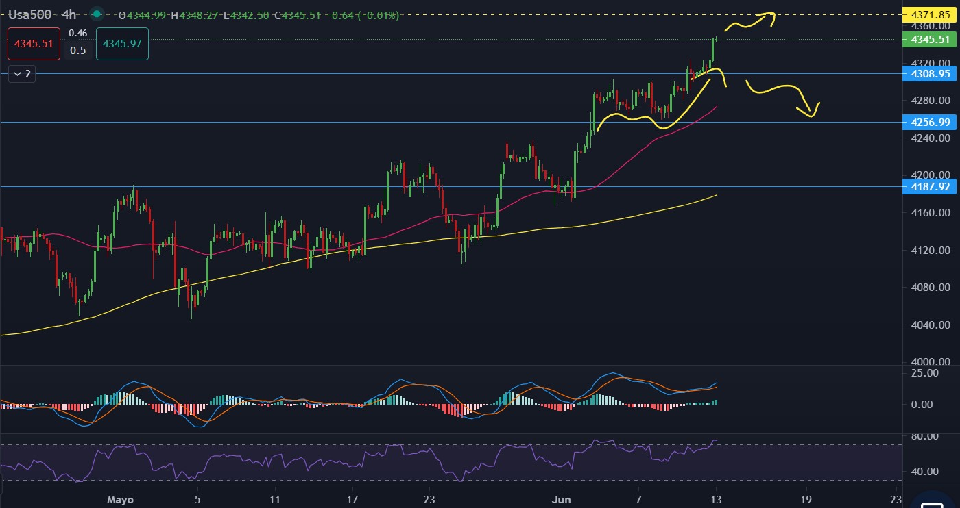 ?Nivel objetivo: 4,371.✅RSI sobre el nivel 50. ? Nivel de soporte: 4,308.
