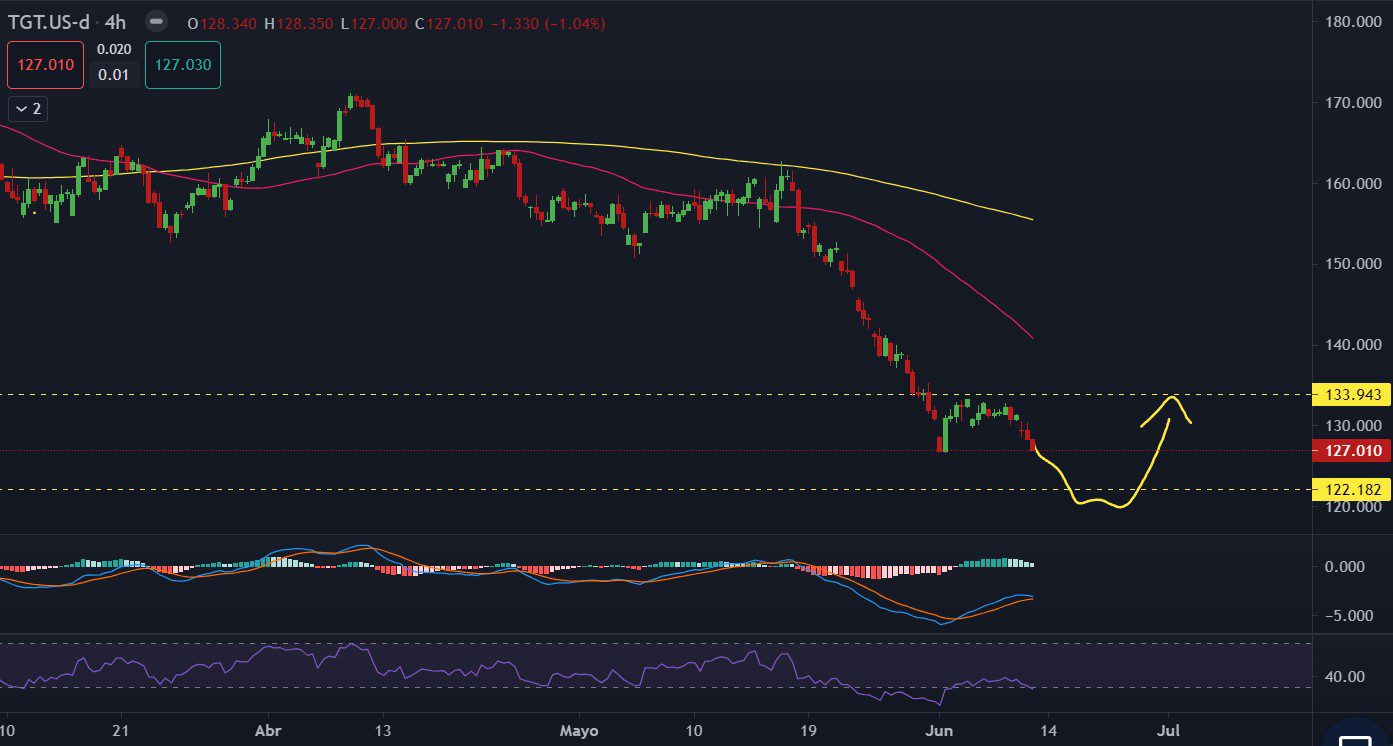 La acción de TGT se mantiene en una tendencia bajista, y es probable que los vendedores continúen dominando el mercado mientras buscan un nivel de soporte alrededor de 122.18. Los indicadores técnicos aún muestran fortaleza, lo que aumenta la probabilidad de que la acción siga su trayectoria descendente.
