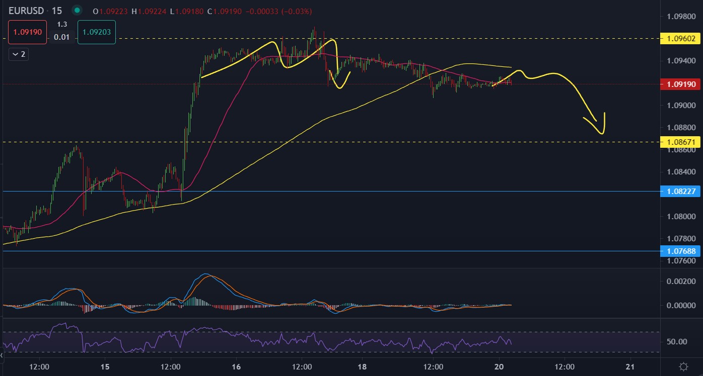 ⌚Temporalidad: 15M✅EMA con pendiente lateral. ?Nivel de resistencia: 1.0960
