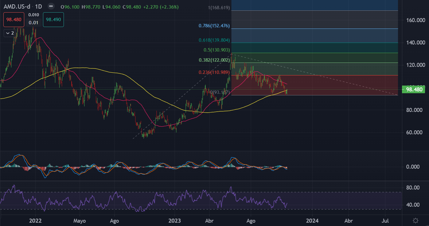 En lo que va del año, la acción de AMD ha experimentado un aumento del 49%, lo que podría mantener una percepción positiva para los inversores en el cierre del año y atraer a compradores si la acción se logra mantener por encima de los 100 dólares. Si observamos la extensión de Fibonacci, los niveles clave para los compradores se ubican sobre el 23% en 110.98 y el 38% en 122.00.