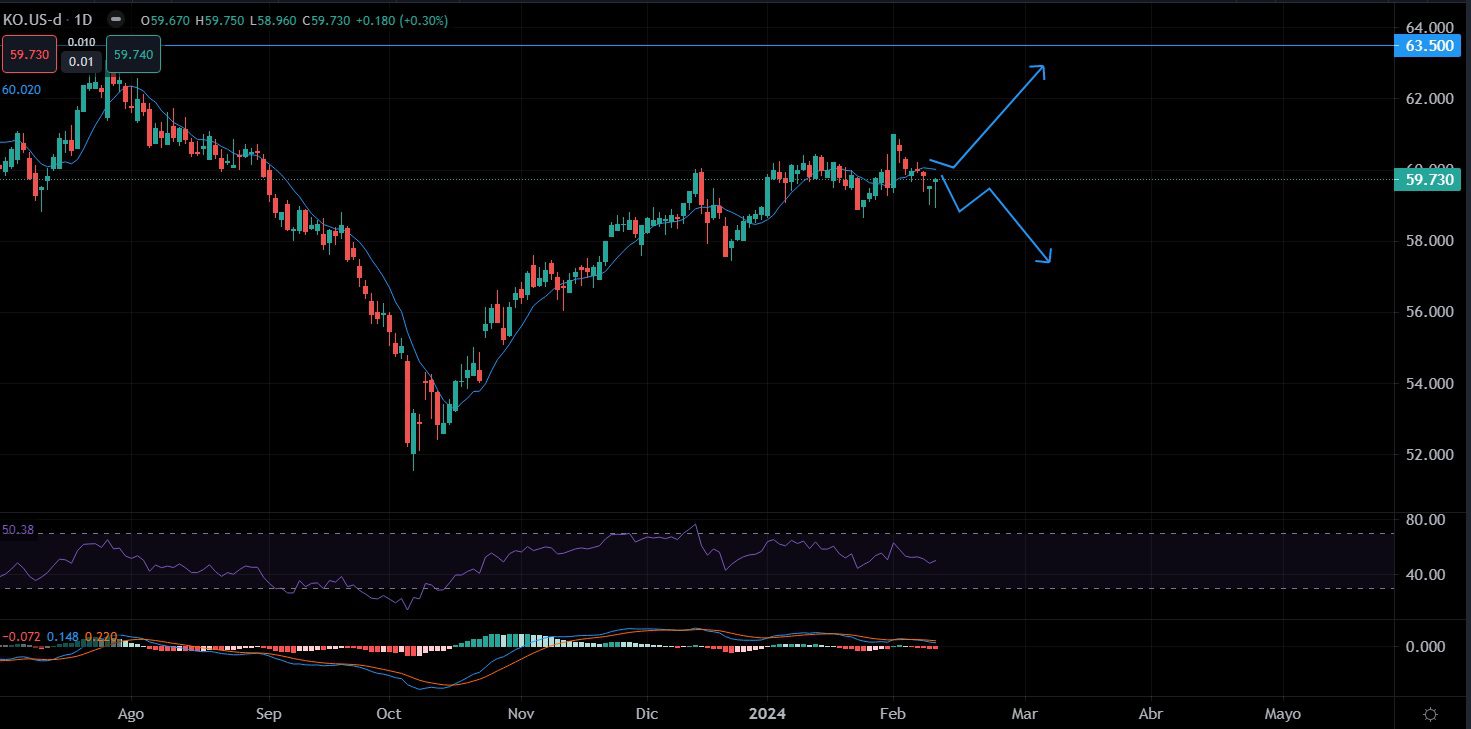 Es crucial estar atentos esta semana, ya que se esperan los resultados empresariales de la compañía. Si son notables o cumplen con las expectativas, podríamos ver que la acción alcance la zona de los $ 63.50.